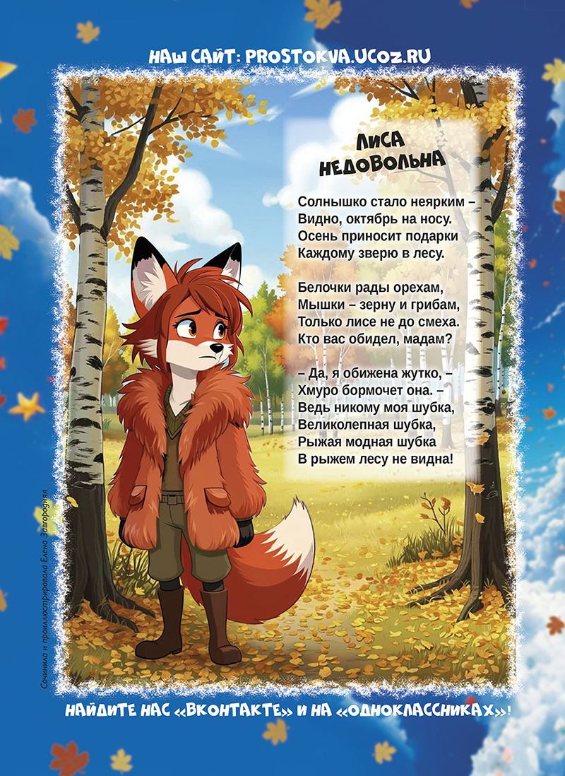 Сова встала из кресла и направилась к окну, чтобы лучше разглядеть только что связанную рыжую пуховую жилетку. «Вот лиса-то обрадуется!..»